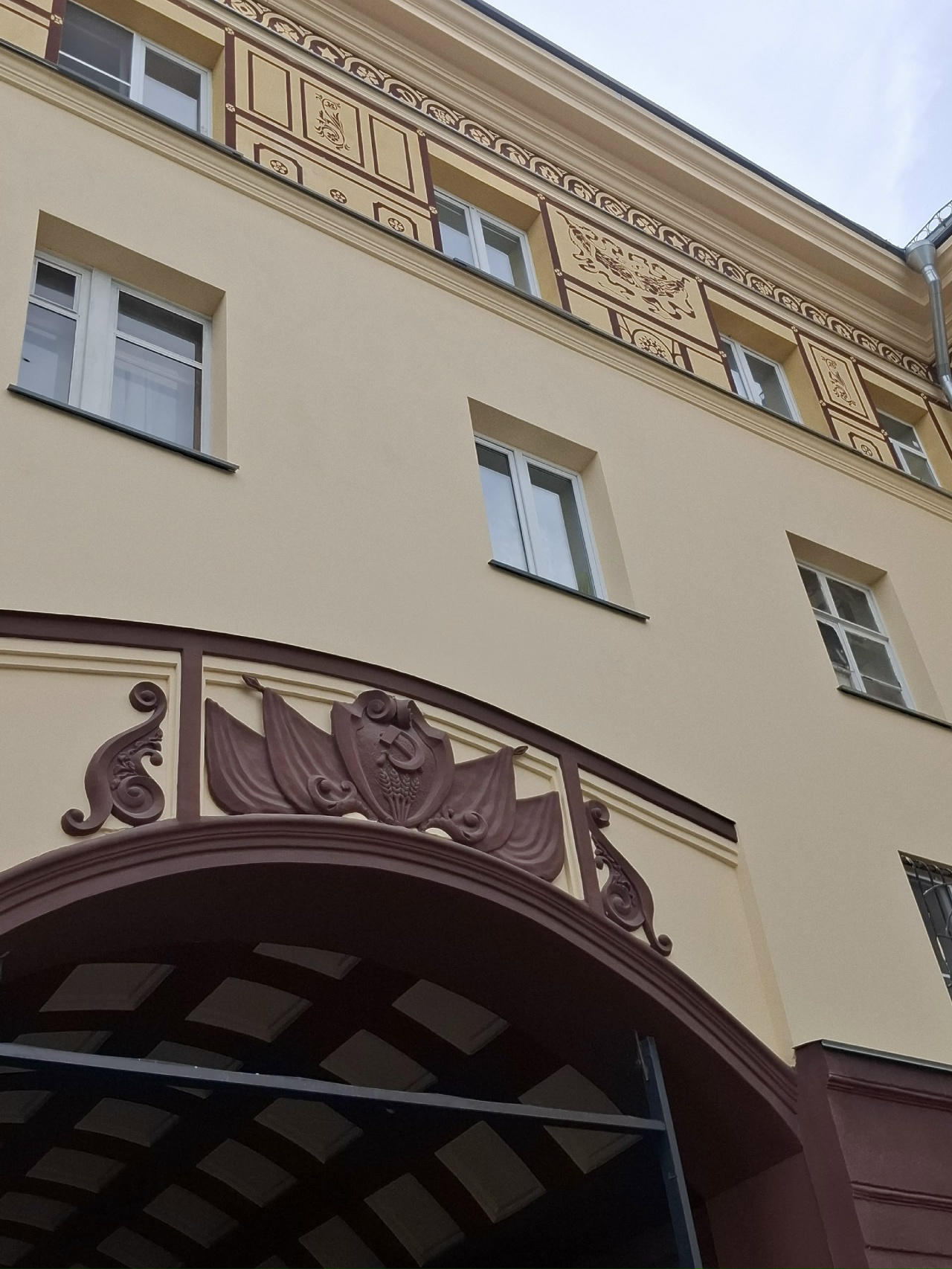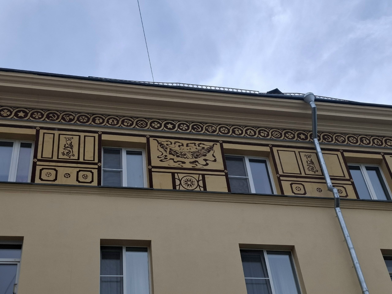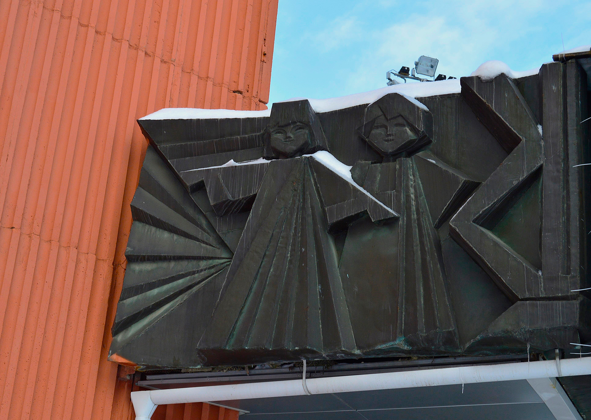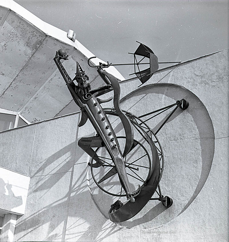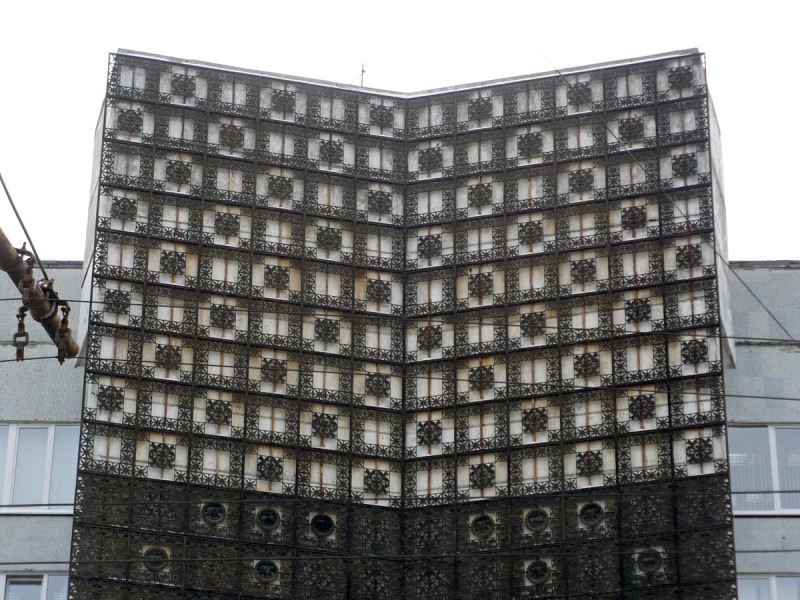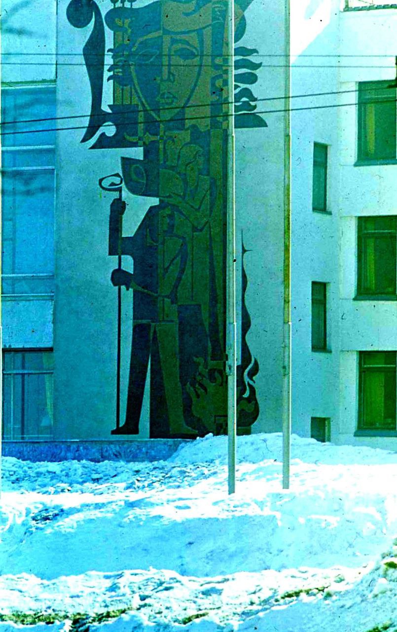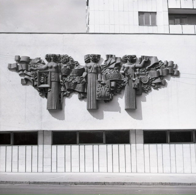 Одной из отличительных особенностей архитектуры советского модернизма стало украшение фасадов домов различными видами монументально-декоративного искусства. Активное развитие данного явления приходится на 1960–1980-е гг. С целью придания индивидуальности лаконичному облику здания использовали мозаики, сграффито, металлические конструкции.