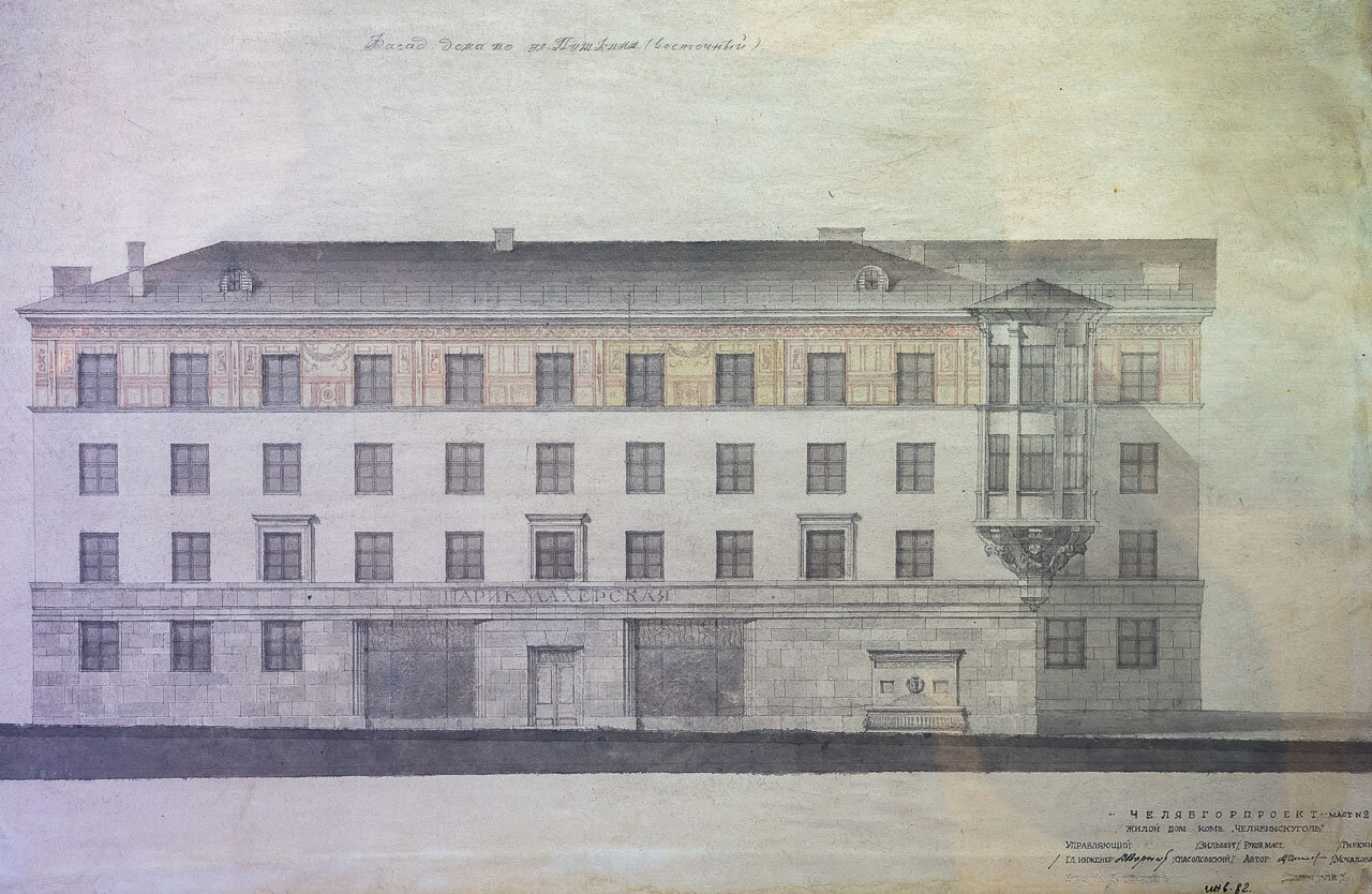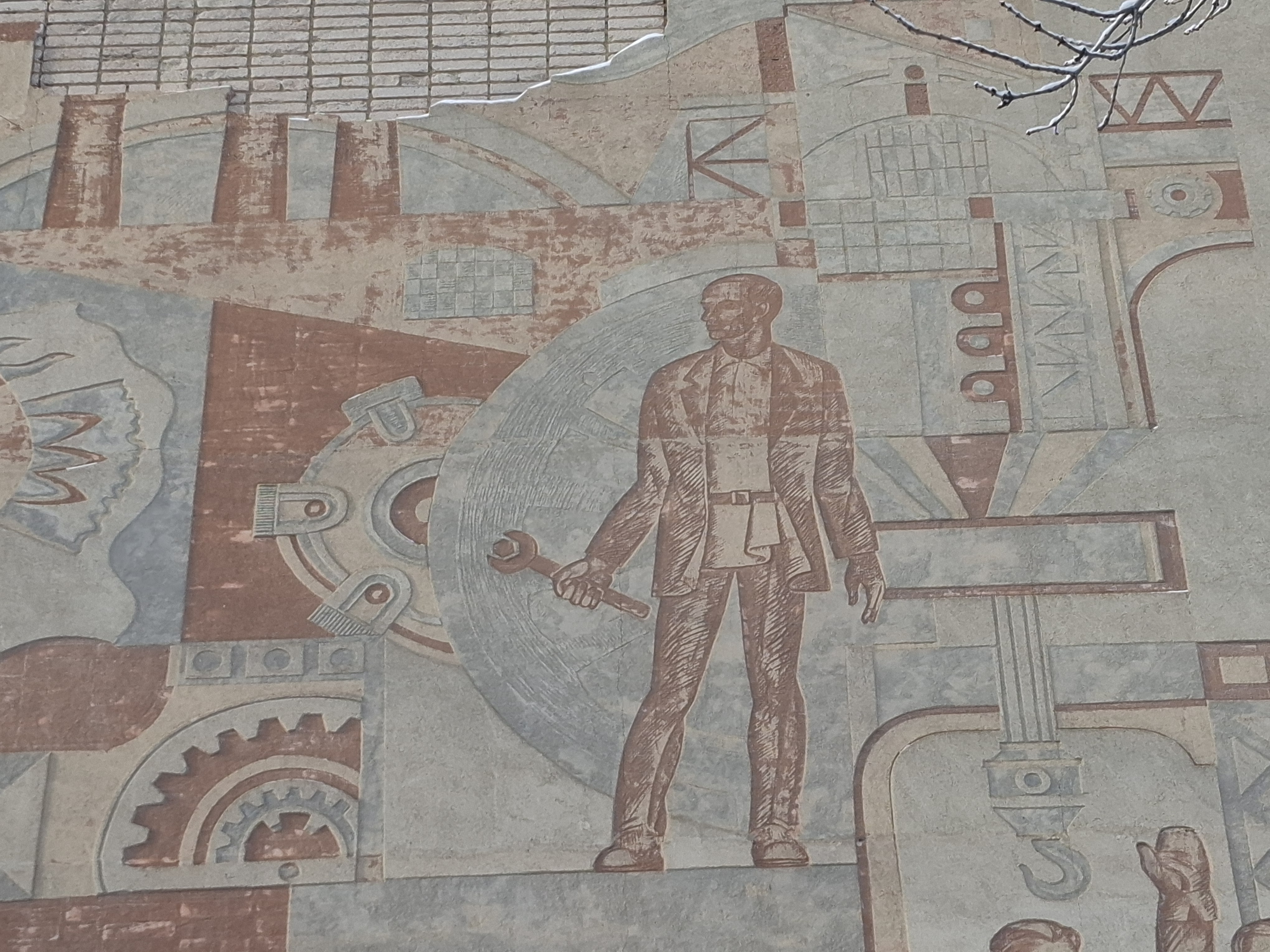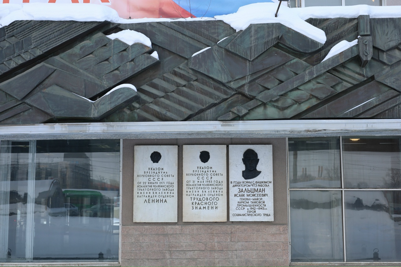 Одним из первых примеров декорирования лаконичного фасада здания стало панно в технике сграффито художницы В. Челинцовой, украсившее механосборочных цех ЧТЗ в 1933 году (не сохранилось до нашего времени). В дальнейшем практика использования мозаик, сграффито и панно из металла стала актуальной в период архитектуры модернизма.