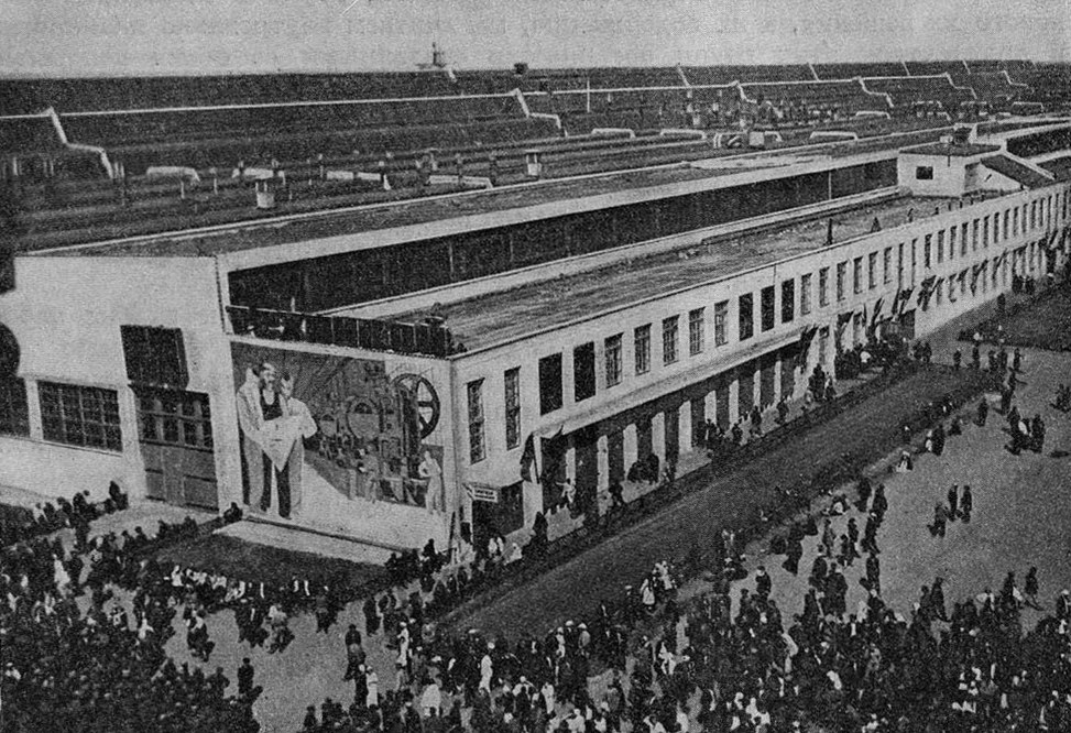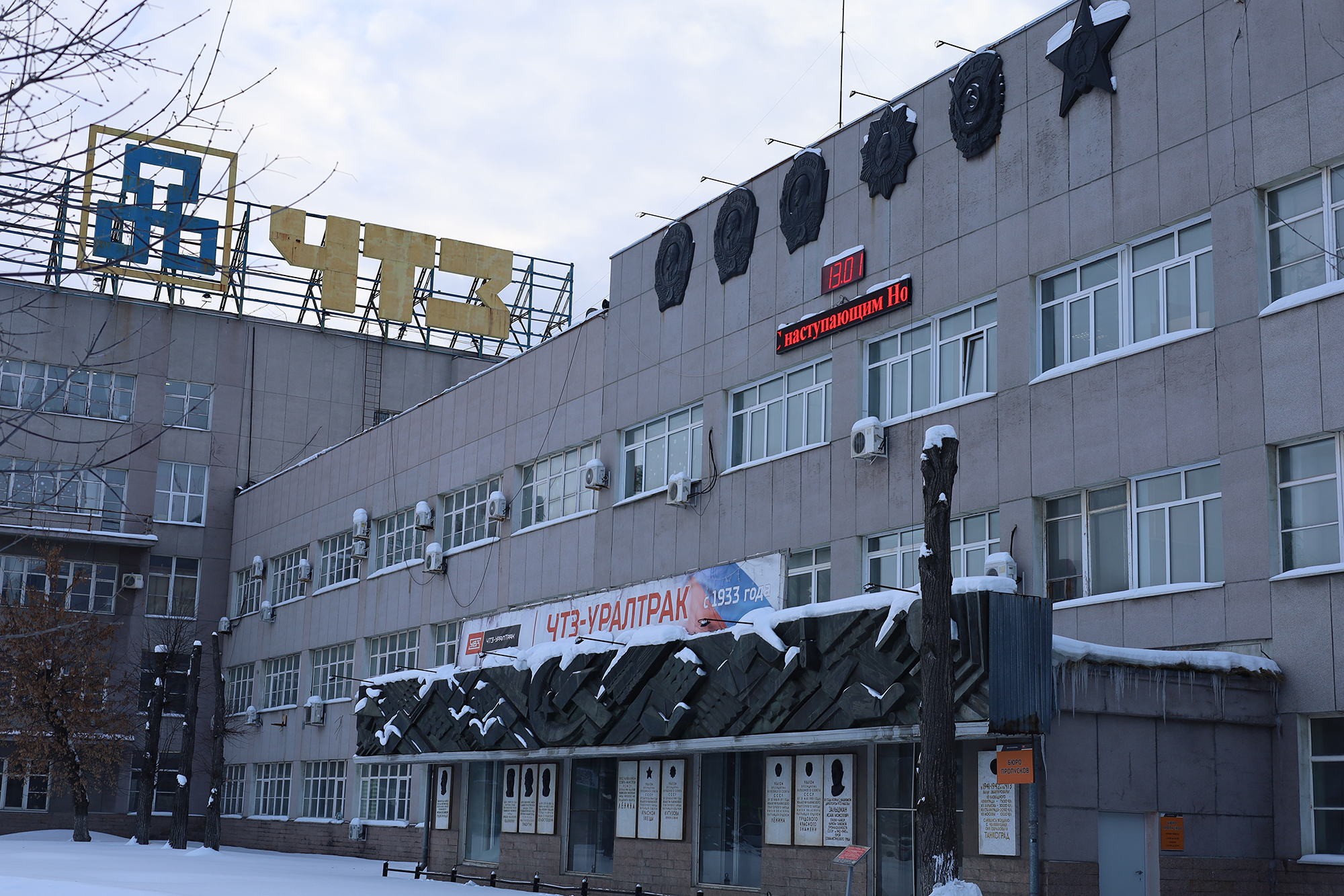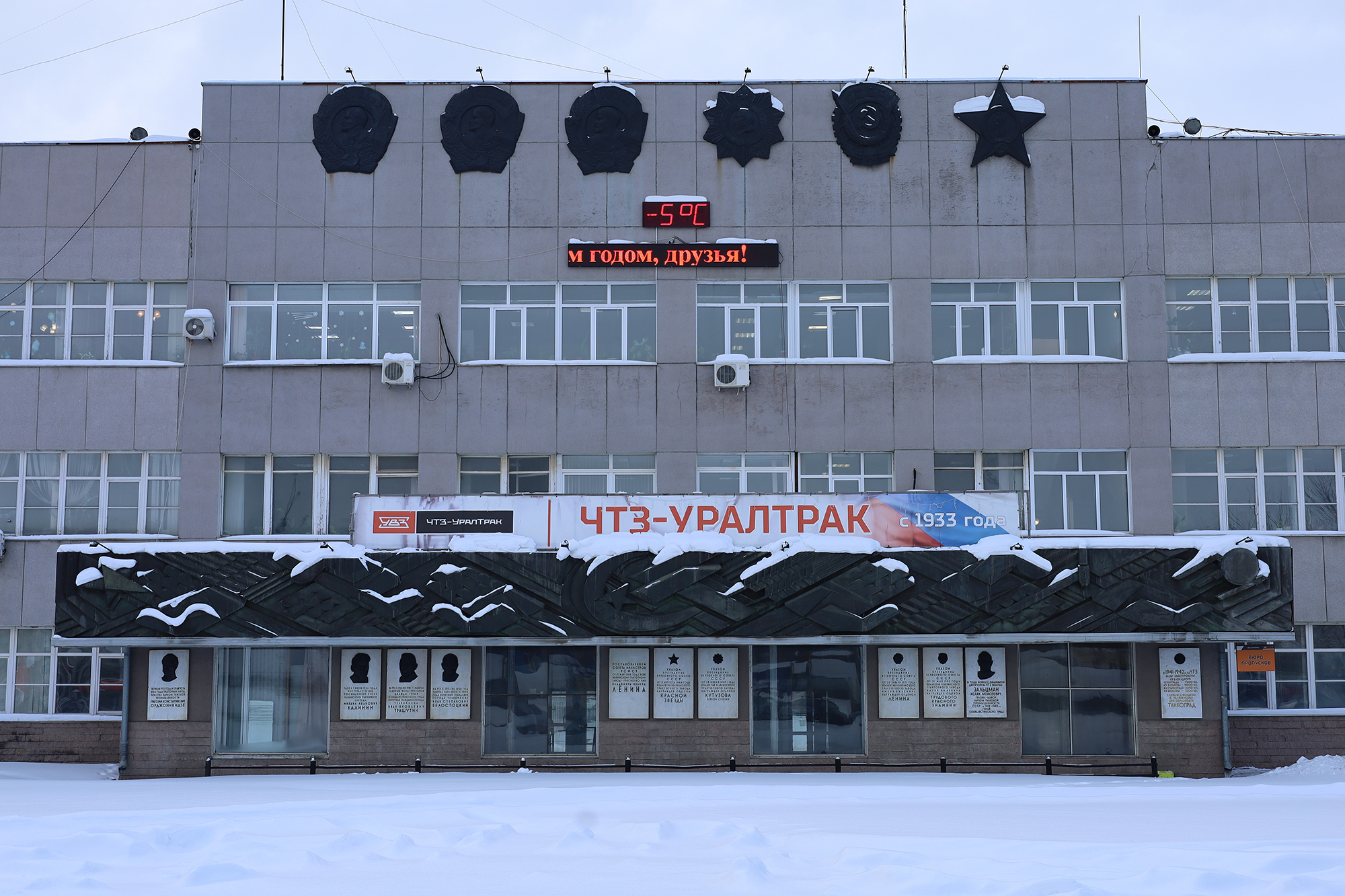 Одним из первых примеров декорирования лаконичного фасада здания стало панно в технике сграффито художницы В. Челинцовой, украсившее механосборочных цех ЧТЗ в 1933 году (не сохранилось до нашего времени). В дальнейшем практика использования мозаик, сграффито и панно из металла стала актуальной в период архитектуры модернизма.