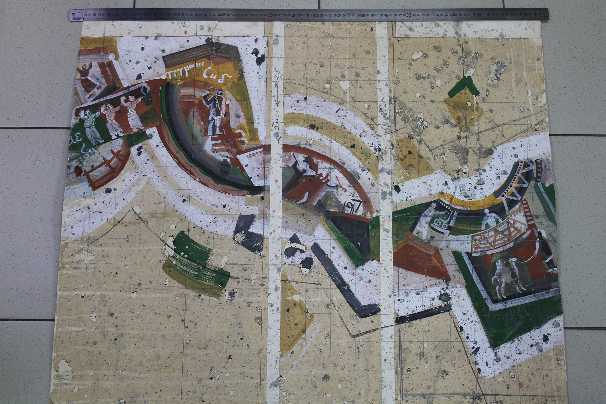 Сграффи́то (от ит. «sgraffiare» – «царапать»). В основе техники лежит нанесение на основу двух и более различных по цвету слоёв разноцветной штукатурки. Пока слои окончательно не высохли, происходит частичное процарапывание по заданному рисунку до нужного красочного слоя.