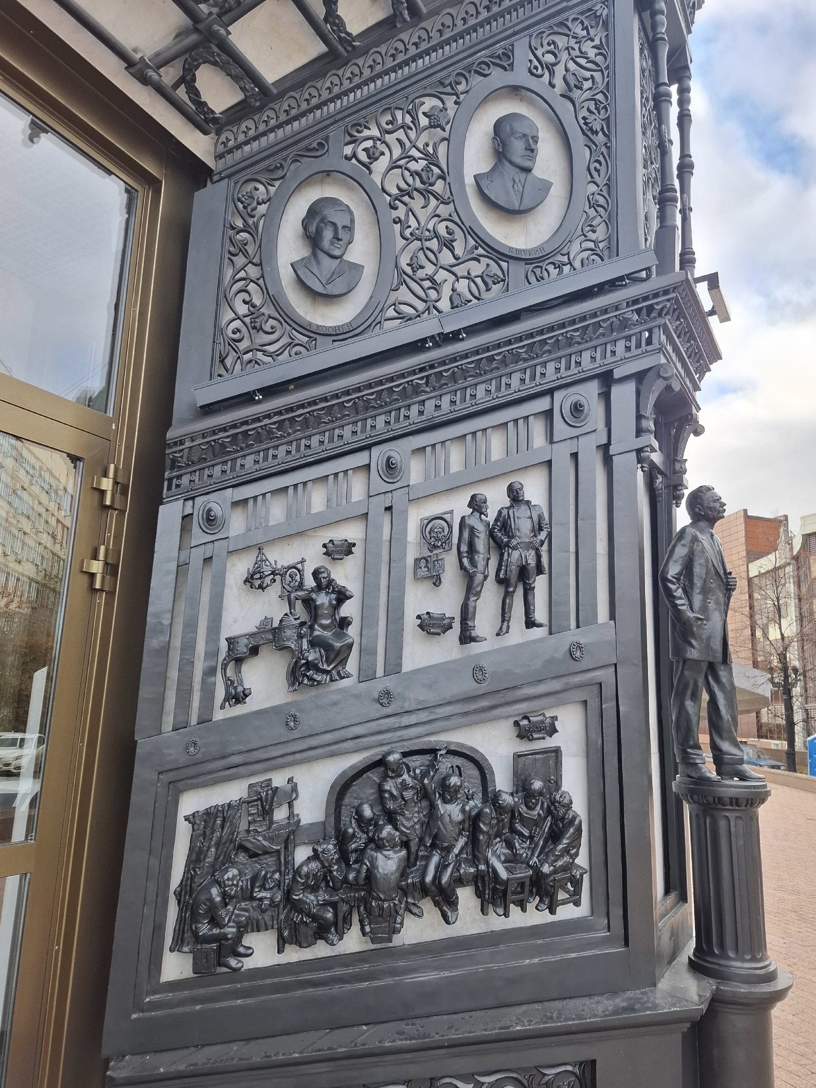 Материалы выстроены как исследовательский маршрут: через карточки объектов, биографии авторов, детали произведений, карту расположения и публикации можно увидеть не отдельные фрагменты, а целостную художественную среду города.